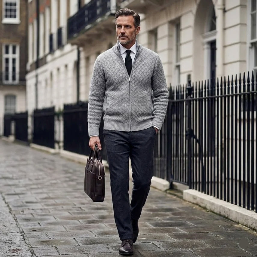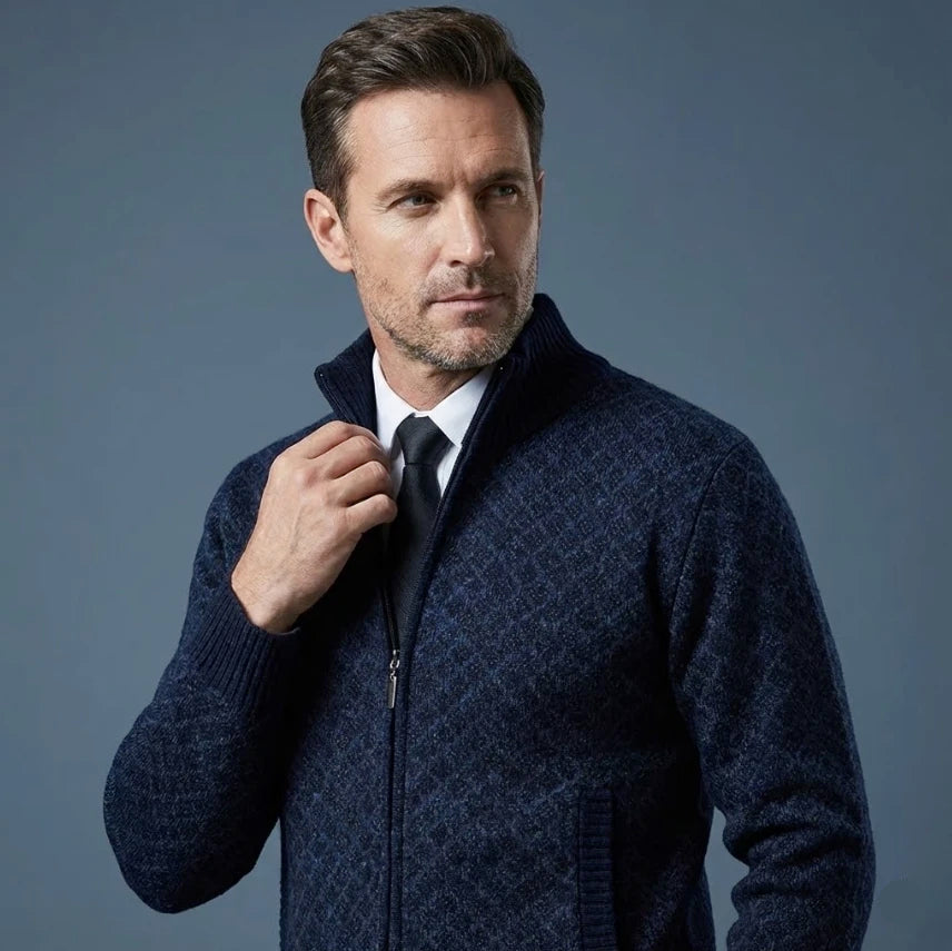 Damon | Men's Full-Zip Patterned Sweater Jacket